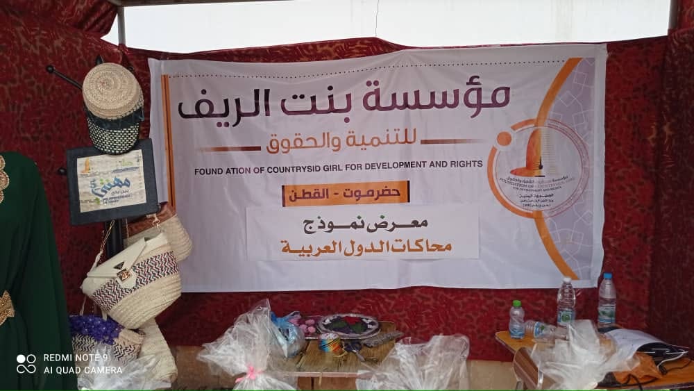 شاركت مؤسسة بنت الريف للتنمية والحقوق بالقطن اليوم في معرض اليوم التراثي اليمني الذي يقام على هامش مؤتمر نموذج محاكاة جامعة الدول العربية الذي تنفذه مؤسستي عدالة للتنمية القانونية وحضرموت الثقافية بإشراف وزارة الخارجية بمشاركة 66 شاب يمثلون كافة الدول العربية الذي يقام بقصر الكثيري مدينة سيؤون محافظة حضرموت على مدى يومين.